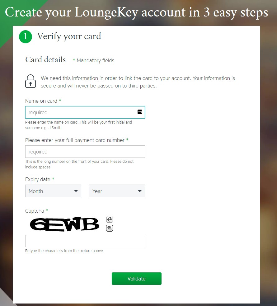 보유중인 MCO 카드의 정보를 입력한 후 Validate 버튼을 누르시고 앞으로 사용할 ID 와 패스워드, 이메일 주소 등의 기본 정보만 입력해 주시면 끝입니다.