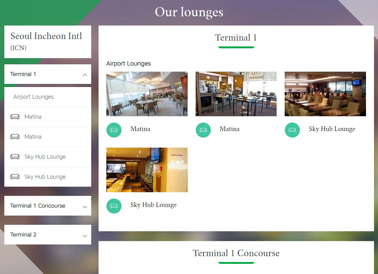 이처럼 공항별로 검색을 해서 어떤 라운지를 이용할 수 있는 지 확인 할 수 있습니다.