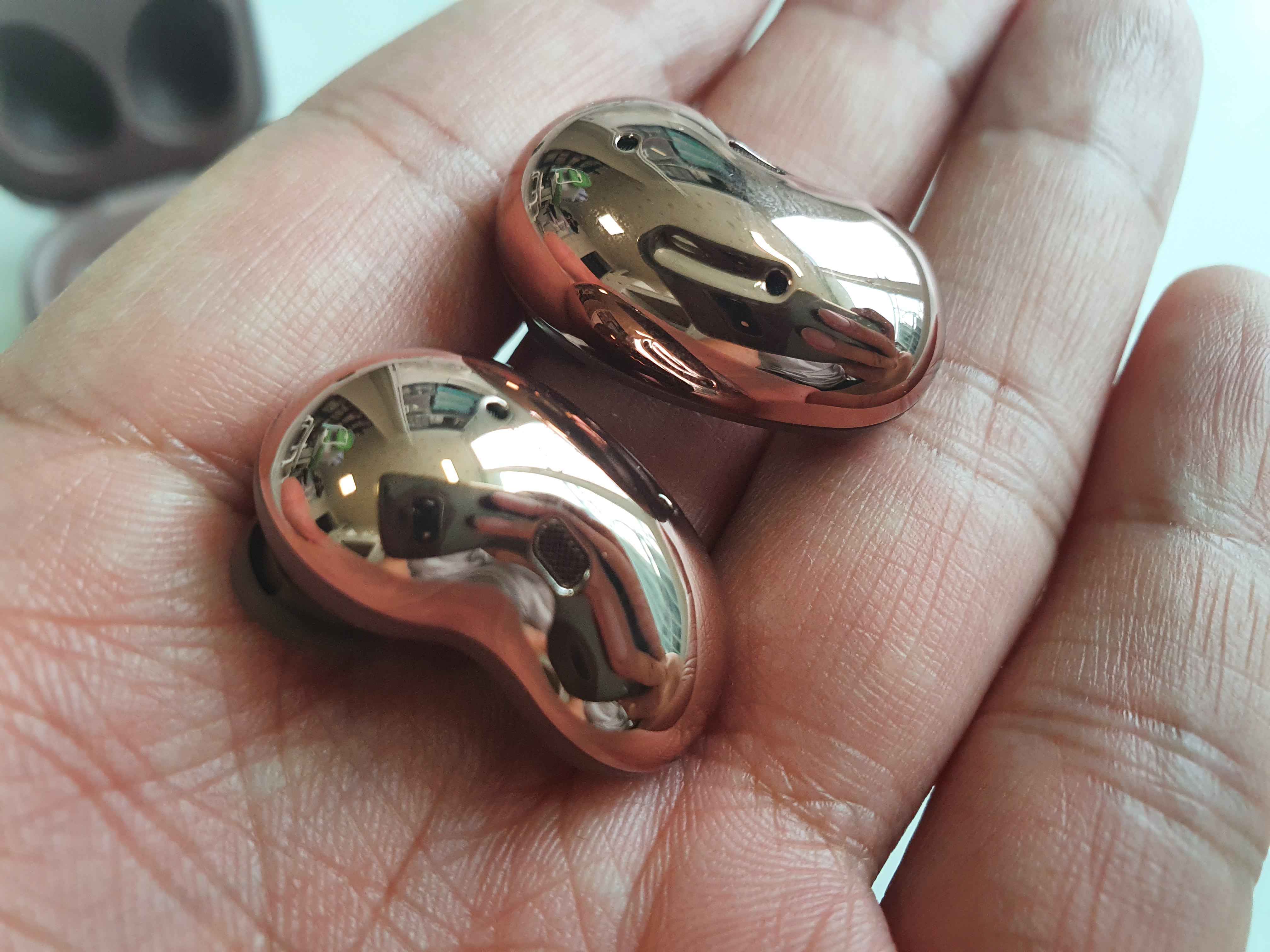 길쭉한 직사각형 타입이었던 전작 갤럭시 버즈 플러스(Galaxy Buds Plus) 에 비해 갤럭시 버즈 라이브(Galaxy Buds Live)는 정사각형 비율로 변경 되었습니다.