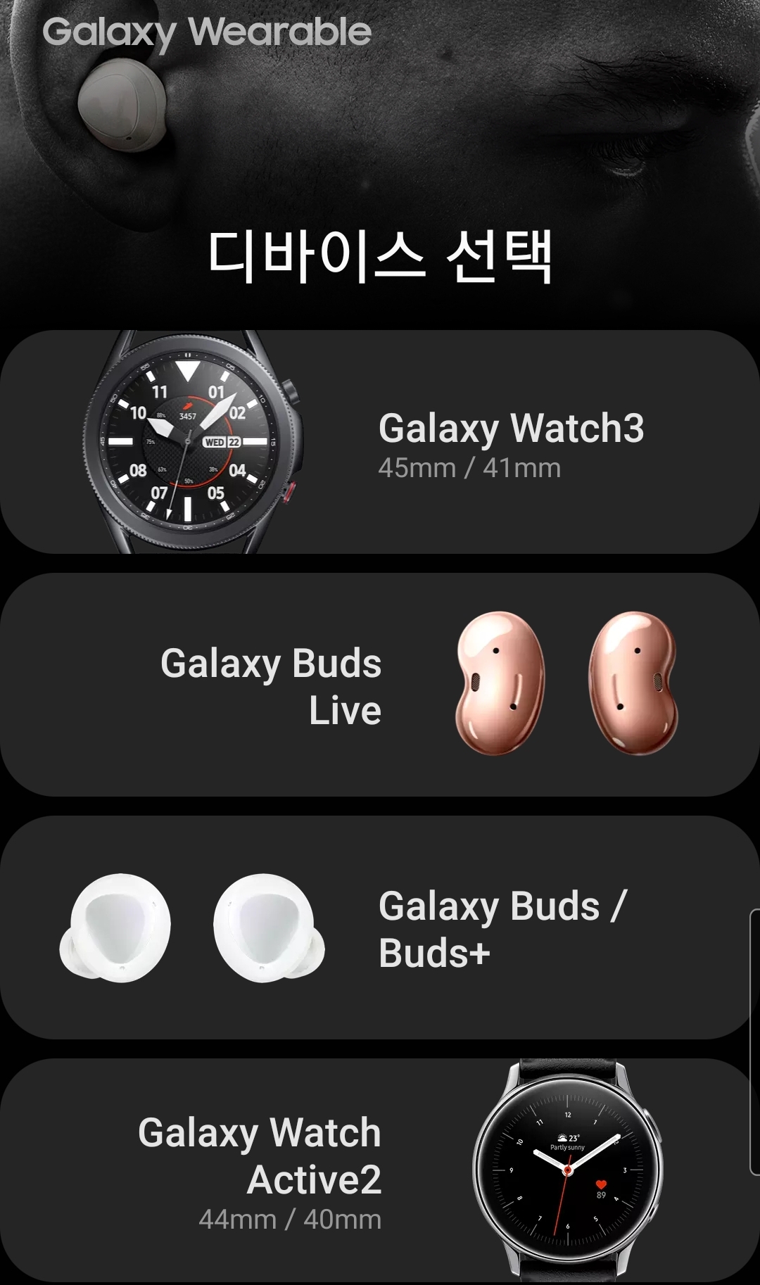 앱 이름도 웨어러블이 아닌 삼성 갤럭시 버즈(Samsung Galaxy Buds) 죠.