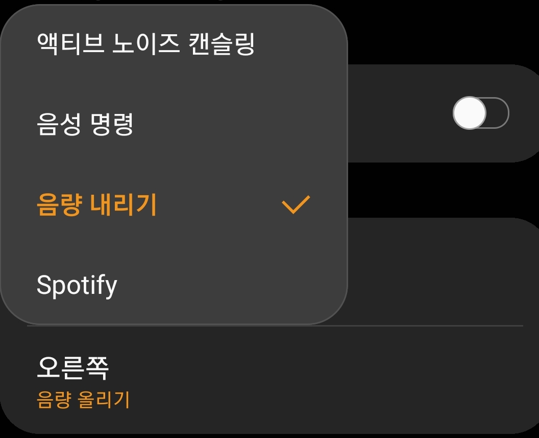 특히 터치 설정 메뉴에서 터치를 길게 누르고 있을 경우 기본값으로 액티브 노이즈 캔슬링(ANC) 의 ON/OFF 로 동장하도록 설정되어 있는데 저는 음량 조절을 자주 하는 편이라 수정하여 왼쪽 이어버드를 길게 터치하면 음량 내리기, 오른쪽 이어버드를 길게 터치하면 음량 올리기로 셋팅 했습니다.