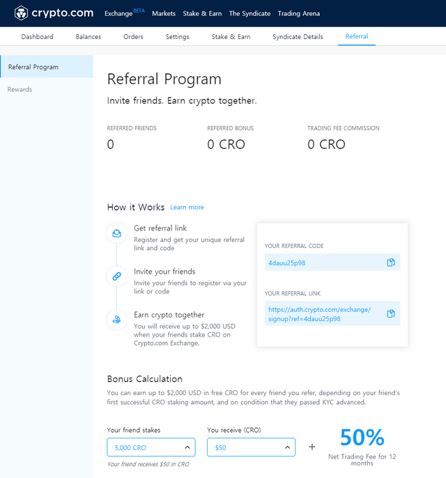 크립토닷컴 사이트에 Referral 메뉴도 이미 추가 되었습니다.