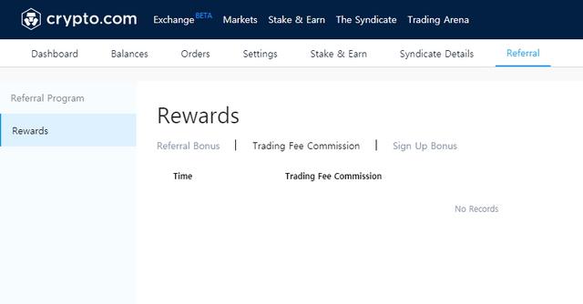 반면 웹 기반인 크립토닷컴(Crypto.com) 거래소의 경우는 사실상 레퍼럴 프로그램이 없었습니다.
