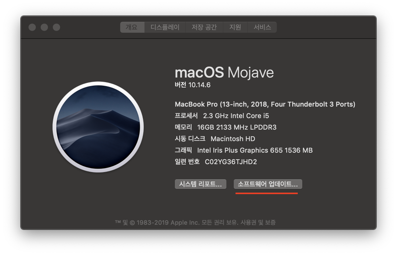 당연히 맥OS 10.14.6 모하비를 사용하고 있었습니다.