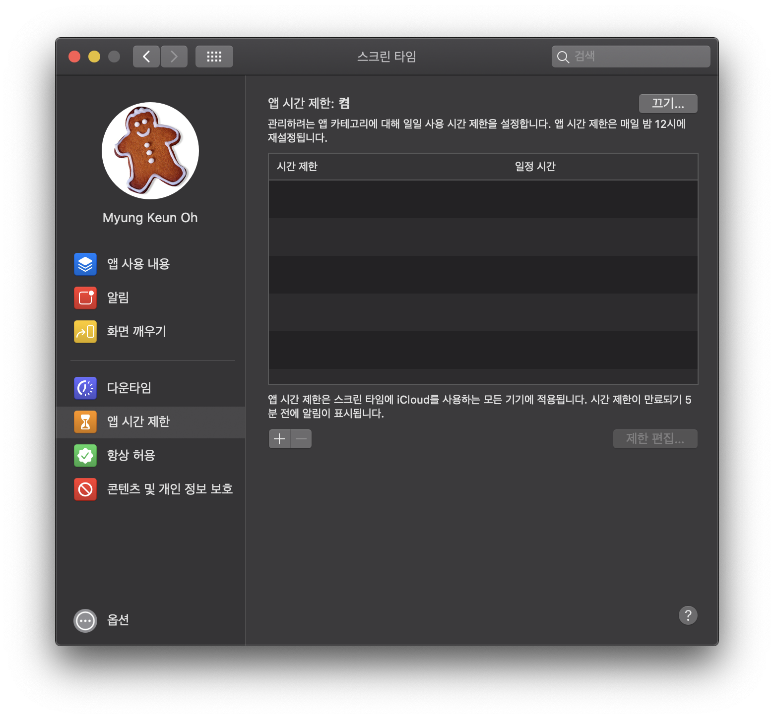 이제 자녀의 아이폰의 사용 시간 제한을 맥에서도 관리가 가능하게 된거죠.
